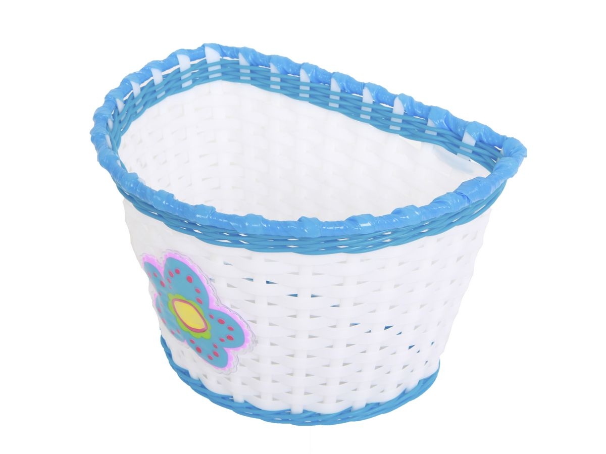 Koszyk rowerowy dziecięcy, wykonany z wysokiej jakości tworzywa sztucznego, kolor biało niebieski
