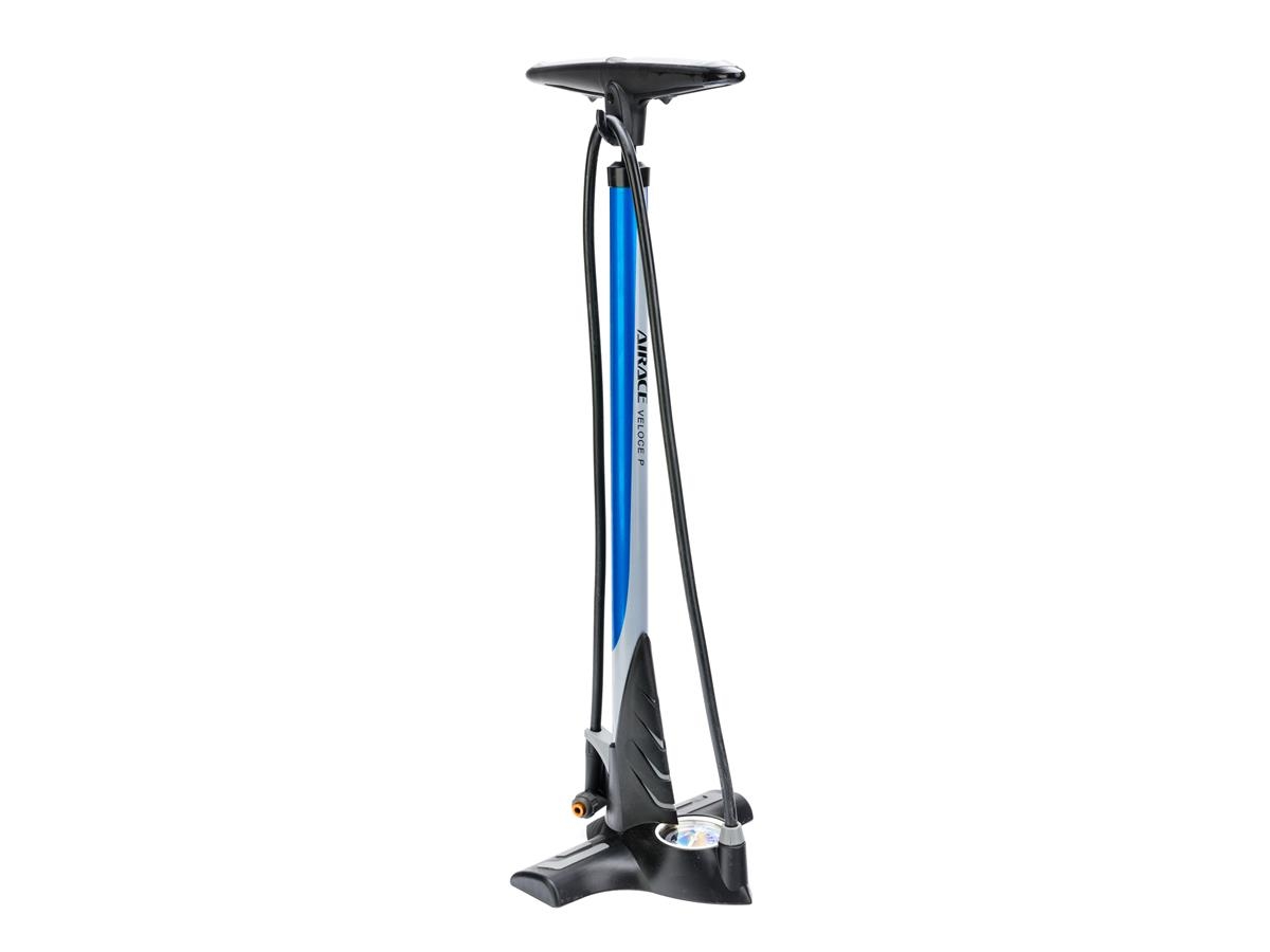 Pompka rowerowa stojąca, stalowa, możliwość pompowania zaworów DV/AV/FV .Ciśnienie robocze do 160 psi / 11 bar /. Wysokość 67 cm.Waga 1272 g. Kolor niebieski