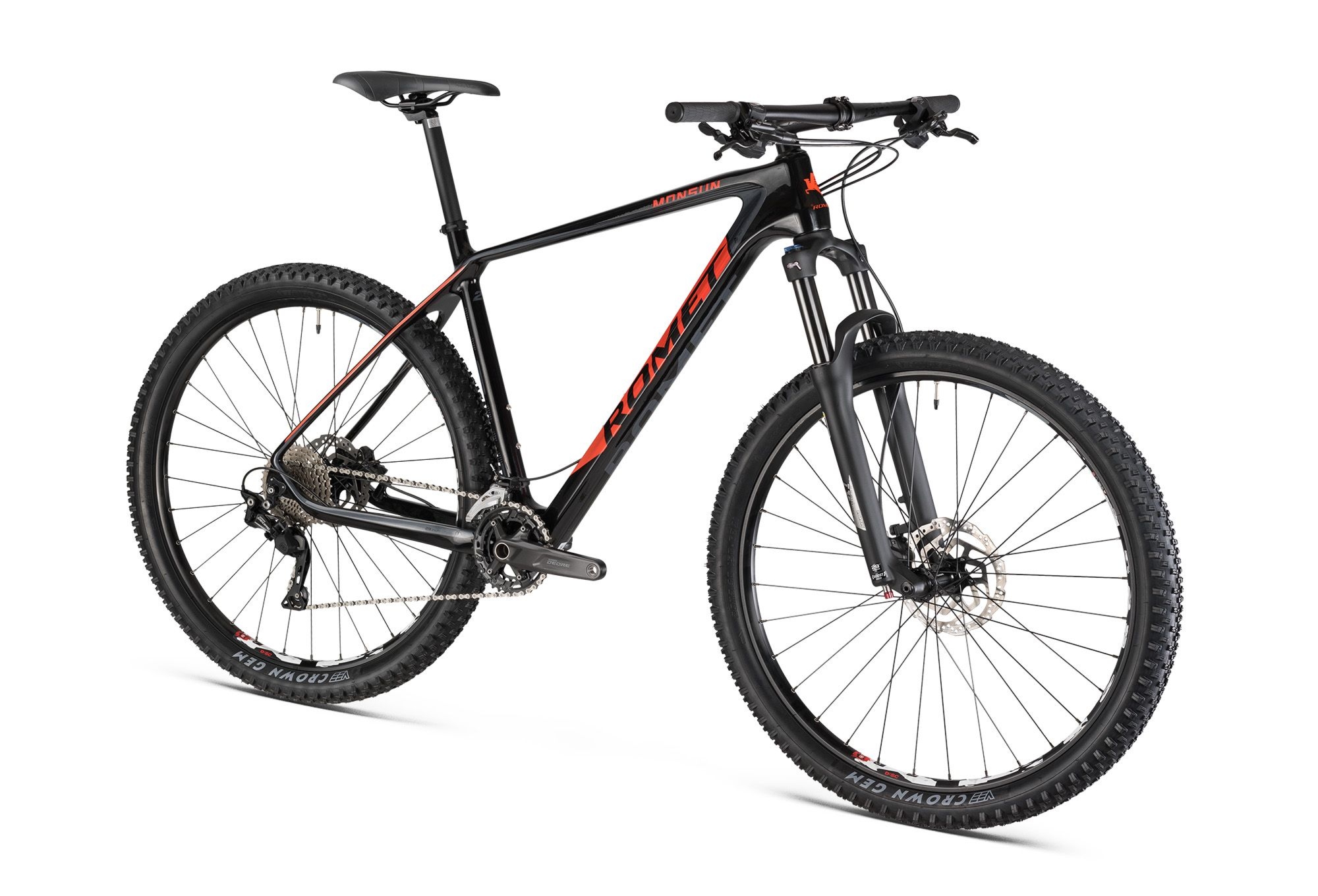 <p>Romet Monsun 1.0 to rower górski MTB stworzony dla prawdziwych pasjonatów jazdy terenowej, którzy pragną poczuć wolność i adrenalinę podczas eksplorowania nowych szlaków. Lekka i wytrzymała rama wykonana z karbonu zapewnia doskonałe właściwości jezdne, pozwalając na dynamiczne przyspieszenia i pewne pokonywanie trudnych podjazdów. Zintegrowane prowadzenie przewodów oraz nowoczesny design sprawiają, że Monsun 1.0 prezentuje się niezwykle stylowo, a Ty możesz cieszyć się niezakłóconą jazdą bez zbędnych przeszkód. </p><p> Wyposażony w powietrzny widelec Suntour X-1 32 Air LOR o skoku 100 mm, rower doskonale absorbuje wstrząsy i nierówności terenu, co przekłada się na komfort i pewność podczas jazdy nawet na najbardziej wymagających trasach. Napęd 2×10 oparty na komponentach Shimano Deore SL-M6000 gwarantuje płynną i precyzyjną zmianę biegów, umożliwiając dostosowanie przełożeń do każdej sytuacji. Opony oferują doskonałą przyczepność i stabilność na różnorodnych nawierzchniach – od błotnistych ścieżek po skaliste zbocza. </p><p> Monsun 1.0 to nie tylko sprzęt, ale przede wszystkim klucz do niezapomnianych przygód i emocji na świeżym powietrzu. Dzięki systemowi Tubeless Ready oraz obręczom Tubeless Ready możesz z łatwością dostosować rower do swoich potrzeb, zwiększając komfort i bezpieczeństwo jazdy. Piasty w standardzie Boost oraz uniwersalny hak ramy UDH zapewniają kompatybilność z najnowszymi standardami i łatwość serwisowania. Jeśli szukasz niezawodnego towarzysza na swoje rowerowe eskapady, Romet Monsun 1.0 jest idealnym wyborem, który pozwoli Ci czerpać pełnię satysfakcji z jazdy w terenie i odkrywać nowe horyzonty.</p>