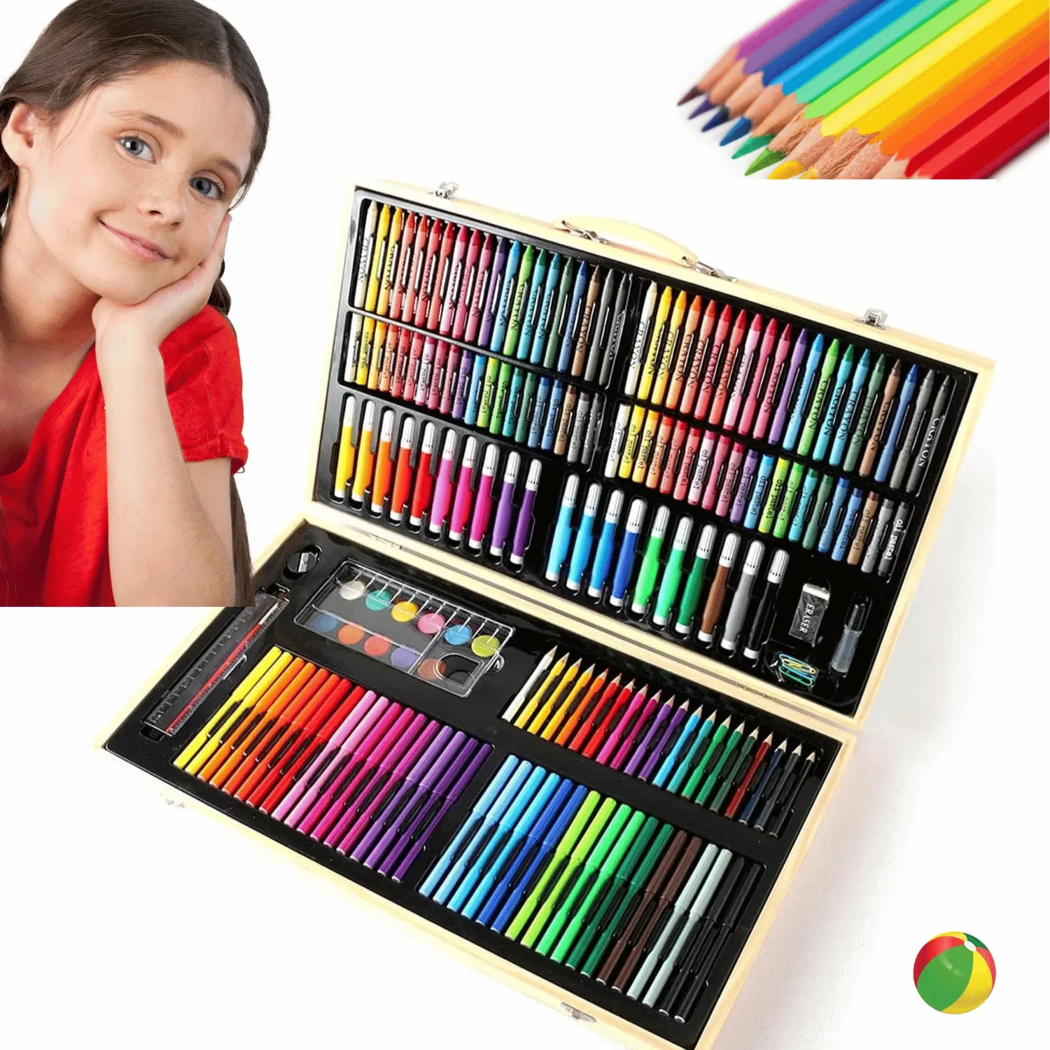 Zestaw Artystyczny w Drewnianej Walizce – 180 elementów